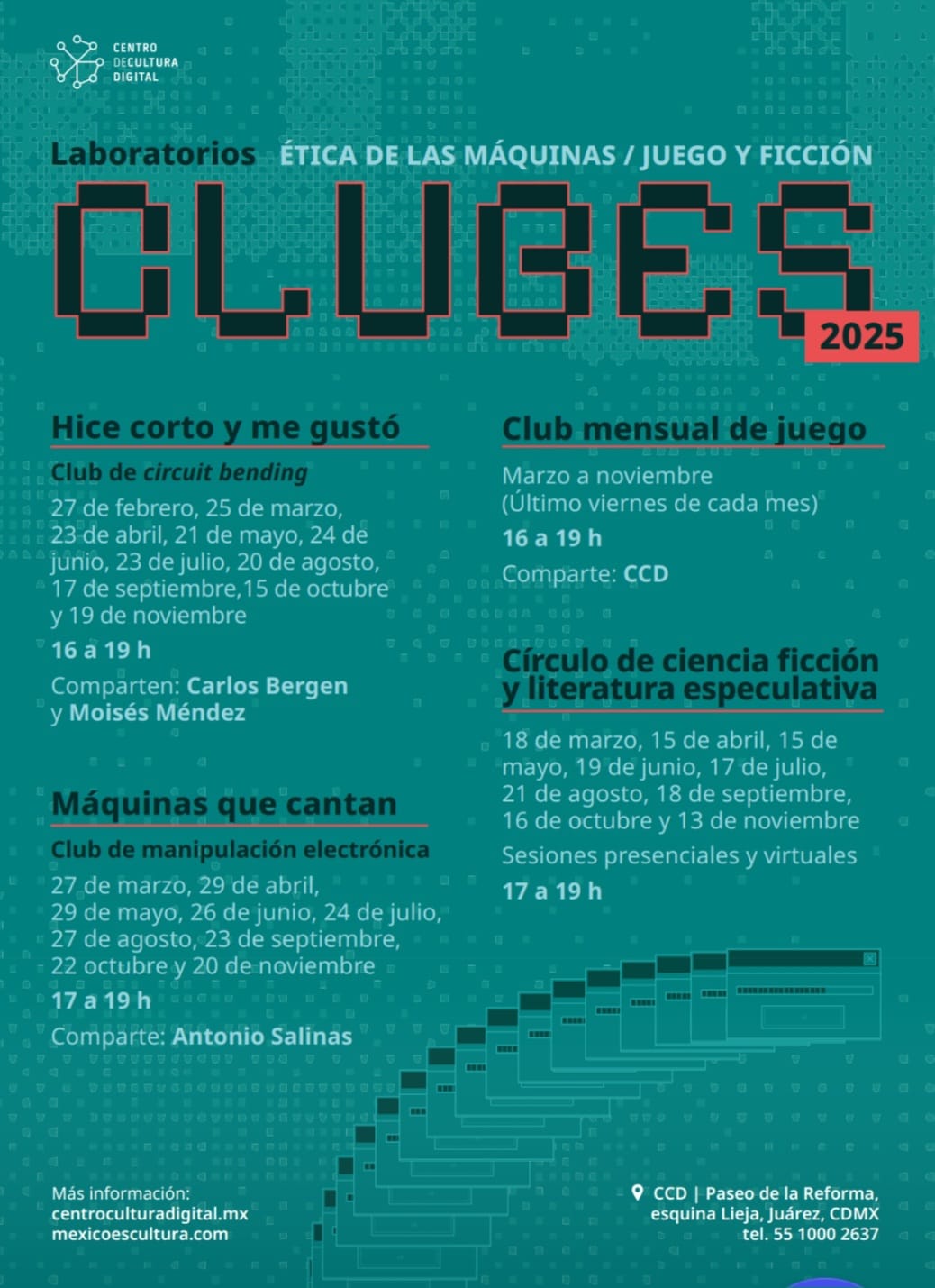 Para más información sobre las fechas y el formulario de inscripción a los clubes, consulta las redes sociales del CCD (@ccdmx) y su sitio web: centroculturadigital.mx.