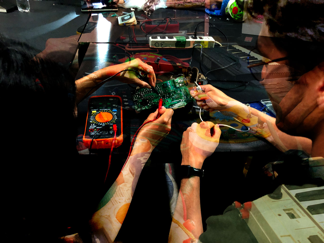 El Club de Circuit bending se dirige a quienes desean iniciar en la música experimental y el arte sonoro. Con la guía de dos músicos expertos en técnicas de manipulación de sonido por vías electrónicas y digitales –Carlos Bergen y Moisés Méndez–, las personas aprenden a intervenir circuitos de aparatos electrónicos en desuso para transformarlos en instrumentos musicales.
