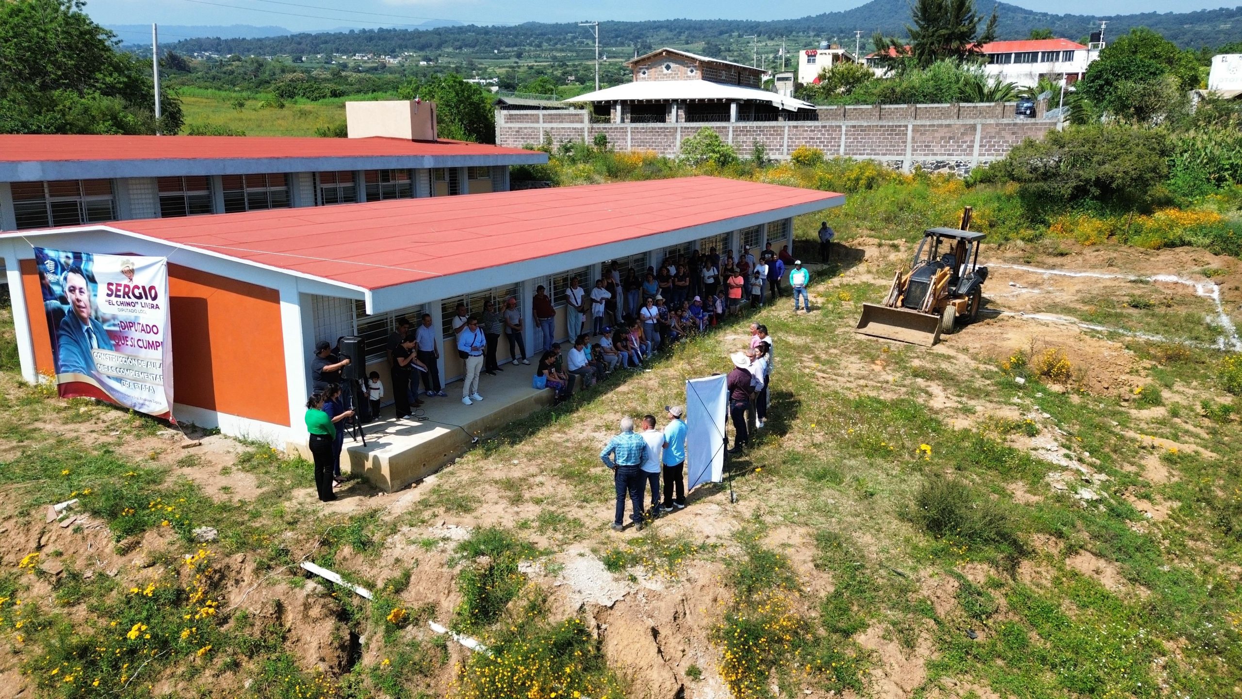 El diputado por el Tercer Distrito, Sergio Omar “Chino” Livera Chavarría, dio el banderazo de inicio de la construcción de una aula en la Telesecundaria General Emiliano Zapata del municipio de Totolapan.